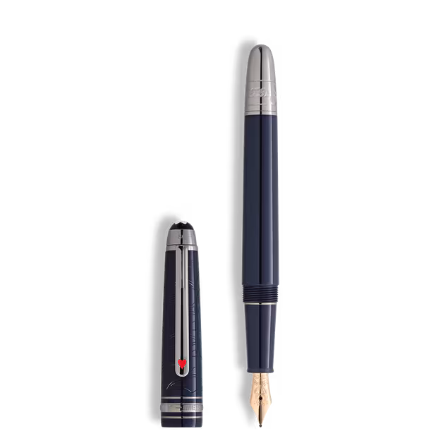 A Meisterstück „80 nap alatt a Föld körül” kollekció Jules Verne híres kalandregényéből merít ihletet. A sötétkék értékes műgyantával díszített Classique töltőtoll Mr. Fogg és Passepartout hősi utazását idézi fel. Az utolsó szakaszon, amely Yokohamából az Egyesült Államokon keresztül Londonba vezet, a páros vonattal szeli át a hatalmas amerikai kontinenst. Merüljön el a bonyolult részletekben – a kupakon elegánsan lézerrel gravírozott vonat, a kúpon biztonsági lánc mintázat, amely tükrözi azt a döntő pillanatot, amikor Passepartout leválasztja a vonatot a mozdonyról, hogy megmentse a sziúk által megtámadott legénységet. A kupak kialakítása a nyomásszabályozó szelepeket és a mozdonyból áradó füstöt ábrázolja, míg a kapcsán egy vörösre lakkozott szív kártyajel látható, amely Phileas Fogg és Aouda hercegnő egyesülését szimbolizálja. Ezenkívül a kártyajelek Fogg merész fogadását is jelképezik, miszerint mindössze 80 nap alatt teljesíti az utazást. A kupak tetején dombornyomással látható az utazás idővonala – 36 nap Yokohamától Londonig, ami a világ körüli utazás teljes 80 napját jelenti. Ezt az íróeszközt egy kézzel készített, 14/11 és 21/12 jelöléssel ellátott 14 karátos arany tollhegy emeli ki – emlékeztetőül Fogg úr november 14-i yokohamai indulására és arra az ambiciózus tervére, hogy december 21-ig visszatér a londoni klubba, hogy megnyerje a fogadást. A tollhegyet egy hőlégballon ábrázolása is díszíti, utalva Jules Verne első kalandregényére.