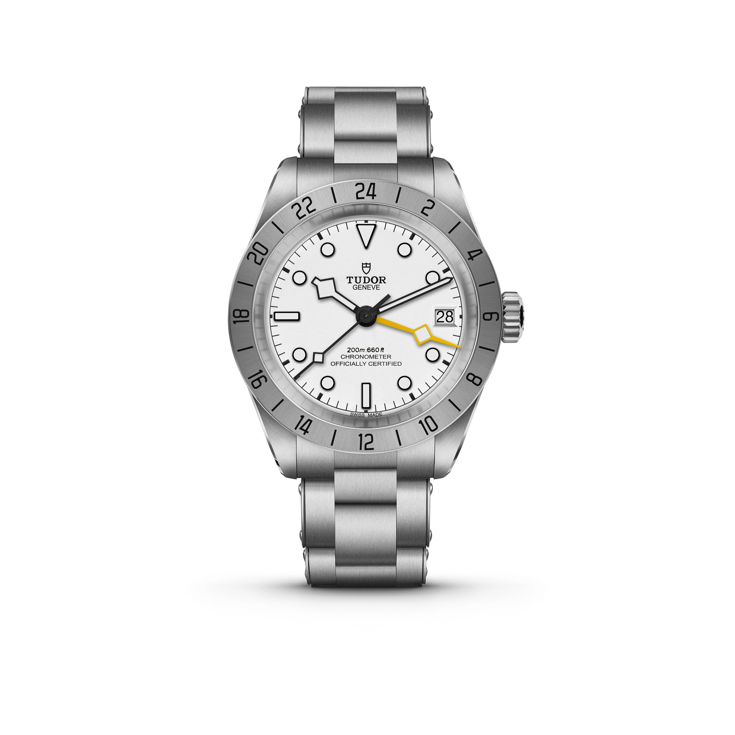 A 39 milliméteres rozsdamentes acéltok elegáns, ugyanakkor kellően robusztus ahhoz, hogy 200 méteres vízállóságával a legkeményebb expedíciókat is jól bírja. A 24 órás skálával ellátott lünetta és a sárga színű 24 órás „Snowflake” mutató révén a Black Bay Pro egyszerre két időzónát is képes megjeleníteni, így tökéletes választás az utazók és a világjárók számára.