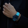 A George Russell nevével fémjelzett IWC kiadások központi eleme a fiatalos kék szín, amely a pilóta egész pályafutását végigkísérte, és mára védjegyévé vált. Ez a speciális árnyalat nem csupán esztétikai választás, hanem a pilóta kettős természetét is tükrözi: a higgadtságot a nyomás alatt és a vad versenyszellemet a pályán. Mindkét modell tokja az IWC jellegzetes fekete cirkónium-oxid kerámiájából készül. A kerámia kiemelkedő karcállósága és csekély súlya ideálissá teszi a mindennapi, aktív használatra tervezett órákban való alkalmazását, de esztétikai szempontból sem másodlagos, hiszen műszaki jelleget kölcsönöz az óráknak.