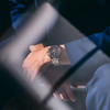 Ez a felületdíszítési technika moiré-hatást kelt: a barázdák váltakozó matt és fényes visszaverődése miatt a mutatók kontúrja erősebben kirajzolódik, a segédszámlap pedig mélyebbnek tűnik. 6 óránál találjuk a kronográf másodpercgyűjtőt egy dátumablakkal kiegészítve, 9 óránál pedig egy második azuré segédszámlapot, ami a kronográf óragyűjtőnek ad otthont.