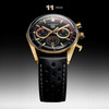 Az acéltokos modell klasszikus fémszíjjal és fekete perforált bőrszíjjal, a sárga arany változat pedig fekete, illetve barna perforált bőrszíjjal érkezik, így mindenki megtalálja a saját stílusához legjobban illő kombinációt. Az óra doboza is külön figyelmet érdemel: a Porsche-piros fadobozban találunk egy órapárnát, valamint egy miniatűr Porsche 911-es modellt is, amely az 1965-ös Monte Carlo Rally-n résztvevő versenyautó mása.
