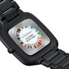 A Rado True Square Thinline Les Couleurs™ Le Corbusier a modern építészet felé mutat: a kollekció Le Corbusier építész 63 árnyalatból álló, 1931-ben megalkotott és 1959-ben kibővített színpalettáját idézi fel. Ezen modell teljesen a 4320E-es színkóddal jelölt elefántcsontfekete színben pompázik.