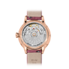 Éjszaka a Super-LumiNova foszforeszkáló bevonattal ellátott lótuszvirág motívum, a mutatók és egyes indexek egy lilás árnyalatban ragyognak, teljesen megváltoztatva az óra vizuális összképét. A 34 milliméteres tok polírozott és szálcsiszolt felületeit az indexek kontúrjaihoz hasonlóan rózsaarany színű PVD-bevonattal kezelték.