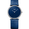 A Longines La Grande Classique de Longines a márka régi, ikonikus kollekciójának 29 milliméteres, gyémántokkal szegélyezett, kvarc szerkezettel felszerelt darabja. A kerek rozsdamentes acéltok peremét 44 darab Top Wesselton minőségű gyémánt övezi, összesen 0,369 karát súlyban. Az egyértelműen ünnepélyes hangulatú óra mélykék számlapja minimalista, indexek és számok nélkül lett megálmodva. A kétmutatós elrendezésű, ezüstszínű mutatók az egyszínű minimalista számlap miatt lebegni látszanak. Az óra szíve a L420-as kvarc szerkezet, amely biztosítja a mindennapokhoz szükséges pontosságot.