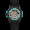 A számlap szkeletált kialakítása lenyűgöző látványt nyújt: a fekete karbon alapot türkiz részletek díszítik. Az óragyártásban nem először láthatunk szkeletált órát, de a Norqain tovább emelte a tétet. A szerkezet teljes mértékben látható, megfigyelhetjük a hajszálrugót, a fogaskerekeket, de akár a korona mechanikájának belső részét is.