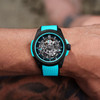A Norqain Wild ONE Skeleton türkizkék modellje azok számára készült, akik sportot űznek az aktív és merész életvitelből, fáradhatatlanok és szükségük van egy olyan impozáns órára, amely tudja velük tartani a lépést. Legyen szó bármiféle sportolásról vagy hétköznapi viseletről, ez az óra minden helyzetben megállja a helyét.