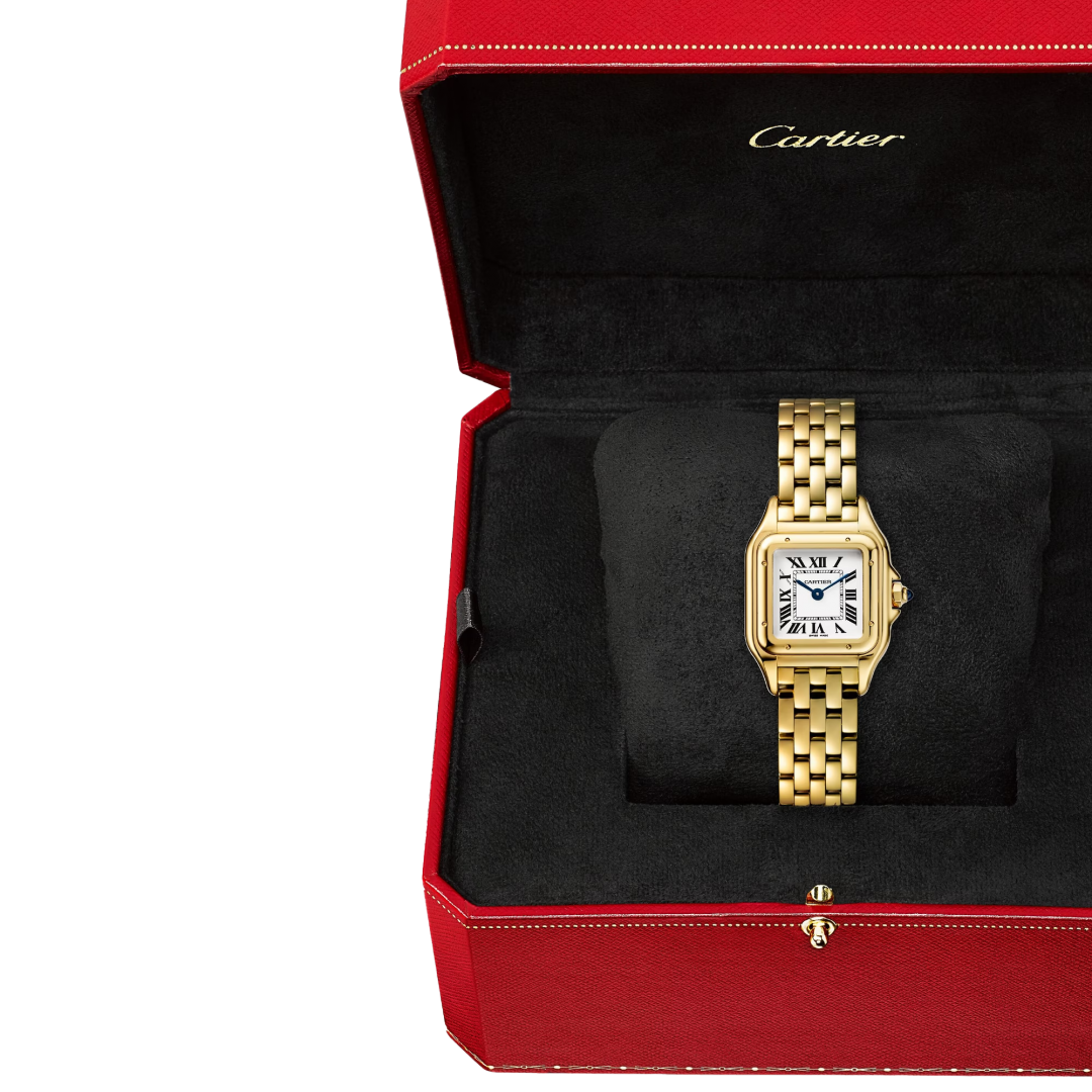 Egy óra, amely egyben ékszer is – a Panthère de Cartier az egyik legjellegzetesebb Cartier dizájn, akár arannyal, akár gyémántokkal vagy kivételes drágakövekkel díszítve tökéletes választás annak a nőnek, aki soha nem marad észrevétlen. A Panthére de Cartier az ékszerórák megtestesítője, amely természetesen illeszkedik a Maison ékszerei közé; kreatív, lágy vonalvezetése finoman öleli körül a csuklót és együtt mozog viselőjével.