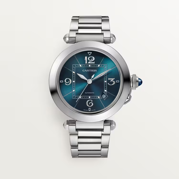 Férfi órák luxus órák luxus karórák webshopja Cartier Pasha de Cartier 41mm automata acél tok acél csat + szíj. Az óra ezen funkciókkal rendelkezik: naptár, stopper, lumineszcencia. Vízállóság: 100 m, szíj anyaga: acél, számlap színe: kék, szerkezet típusa: mechanikus óra automata felhúzással.