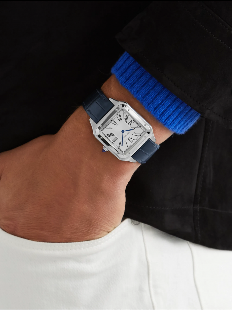Luxus órák Cartier Santos-Dumont extra nagy, kézi felhúzós automata, acél tok.