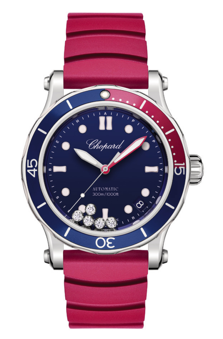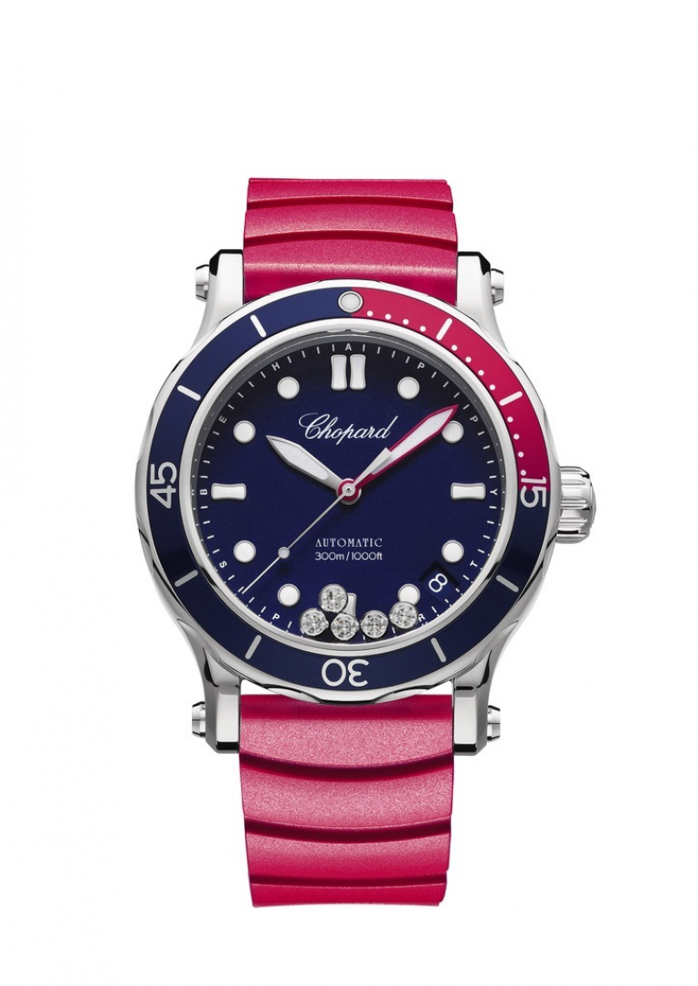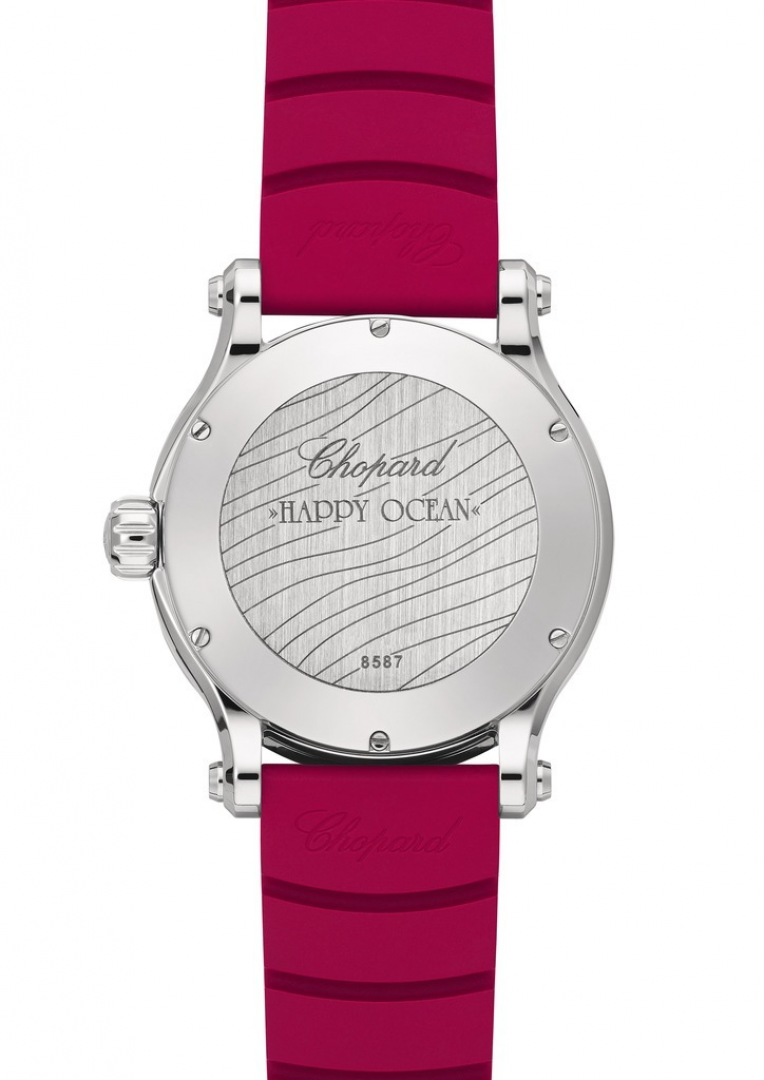 A sportos és elegáns Happy Ocean egyszerre ideális óra az óceán medrének felfedezéséhez, a vitorlás fedélzetén a farniente örömeinek való hódoláshoz vagy a homokban való táncoláshoz. Ez a modell éppoly technikai, mint amilyen játékos, vízálló, és a Chopard önfelhúzós szerkezete által meghatározott ütemre ver. Kis gyémántok nagy dolgokra képesek