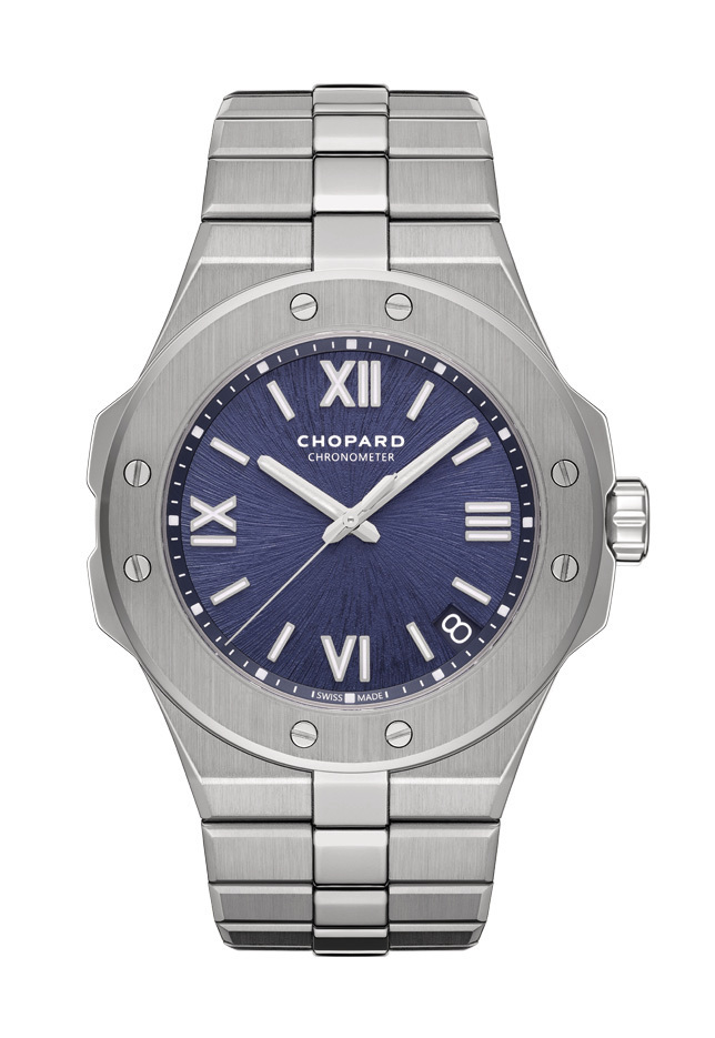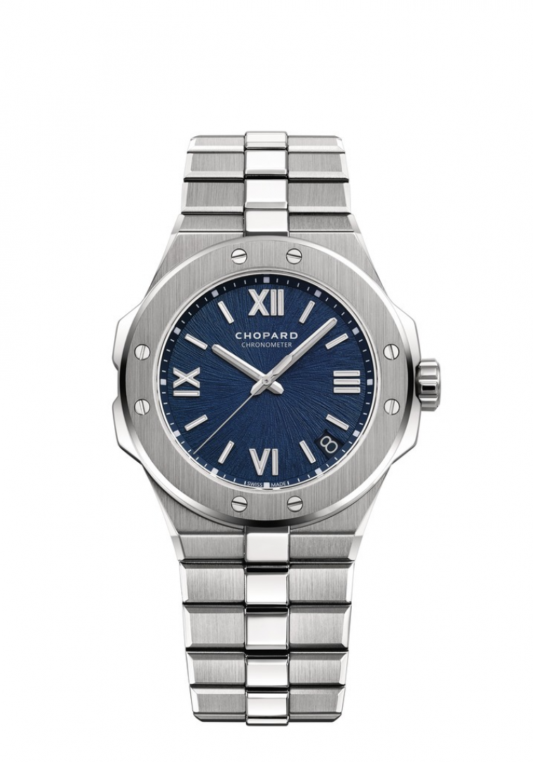 Herren schweizer uhr Chopard Alpine Eagle 41mm stalen kast en armband, blauwe wijzerplaat. Die Uhr hat folgende Funktionen: Datum. Die Grundparameter der Uhr sind: ziffernblattfarbe ist blau, bewegungsart ist mechanische Uhr mit automatischem Aufzug, armbandmaterial ist acél und wasserabweisend ist 100 m.