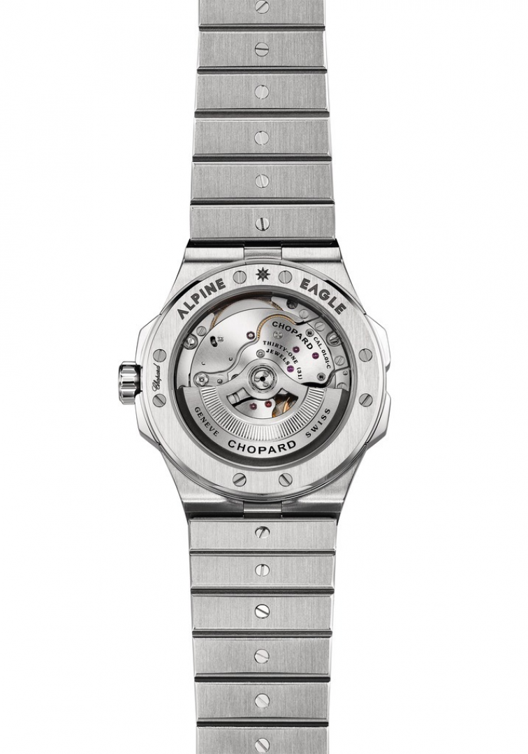 Eigentijds, verfijnd en assertief, de nieuwe sportief-chique Alpine Eagle uurwerk collectie is een eigentijdse herinterpretatie van de St Moritz, het eerste horloge gemaakt in 1980 door Karl-Friedrich Scheufele, nu co-president van het huis Chopard. De Alpine Eagle, door hem bedacht en persoonlijk ontworpen, werd gedreven door zijn passie voor de Alpen en door de verheven kracht van de adelaar die daar hoogtij viert. Gemaakt van een exclusief, ultra-resistent, licht-reflecterend metaal genaamd Lucent Steel A223 -, slaat het op het ritme van een Chronometer-gecertificeerd uurwerk. Alpine Eagle is opgedragen aan eigentijdse adelaars, de ambitieuze mannen die in hun dagelijks leven beter presteren en wier visie inspireert en verheft. Met vooruitziende blik en vastberadenheid gaan ze de uitdagingen van morgen aan en zijn ze zich van nature bewust van het belang van milieukwesties.