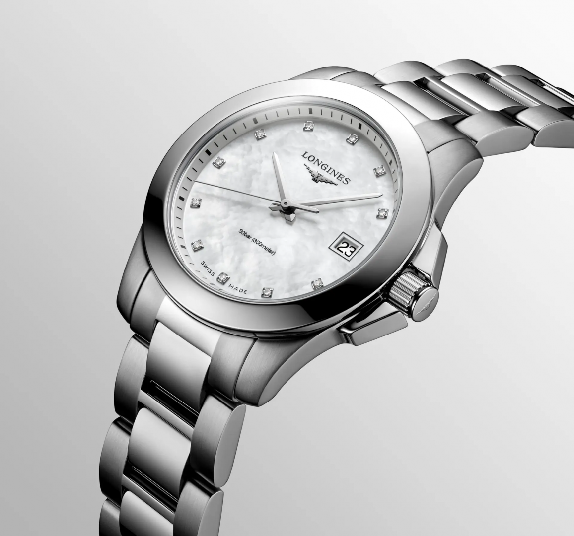 Damen luxus- uhr Longines Conquest Diamonds, Quartz, Water resistance 300M, 34 mm.