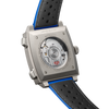 Die Farbe des neuen TAG Heuer Monaco Chronograph Racing Blue erinnert an die Erscheinung hochgeschätzter Automodelle wie Talbot-Lago, Delage und nicht zuletzt den berühmten Bugatti Type 35. Die Hilfszifferblätter und das Armband bewegen sich in einer Palette von Azurblau-Tönen, während die Indexe in einem helleren Farbton erscheinen. Die auffällige Limettengelb-Lackierung auf dem Sekundenzeiger und dem Index bei 12 Uhr verleiht dem Zeitmesser einen frischen Farbakzent und ergänzt perfekt die Farbpalette des Modells.
