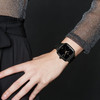 Das polierte Armband aus schwarzer Hightech-Keramik wird mit einer Titanschließe sicher am Handgelenk befestigt.