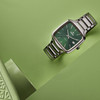 Die True Square mit grünem Zifferblatt ist mit Sonnenschliff versehen, das Gehäuse und das Armband bestehen aus Plasma-Hightech-Keramik, erkennbar an ihrem metallischen Glanz.