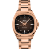 Das Edelstahlgehäuse der Uhr ist ebenfalls mit einer roségoldenen PVD-Beschichtung versehen. Das satinierte und polierte Edelstahlarmband ist ebenfalls roségoldfarben und rundet den einheitlichen Look der Uhr ab. Das extrem flache Automatikwerk Kaliber 72 sorgt für ein unauffälliges Design – ein echter Hingucker für alle, die die großen Gehäuse moderner Uhren nicht mögen. Die geringe Größe des Uhrwerks stellt jedoch keinen Kompromiss dar, denn die Uhr bietet eine hervorragende Leistung und eine Gangreserve von 72 Stunden, die kein Grund zur Sorge ist.