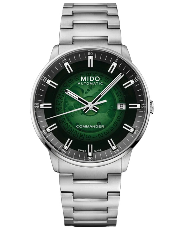 Mido Commander Gradient + Naťahovač SAPHIR len za 1 EUR Automatik, Skeleton, 40 mm. Die Uhr hat folgende Funktionen: Lumineszenz und Datum . Die Grundparameter der Uhr sind: ziffernblattfarbe ist transparent und grün, bewegungsart ist mechanische Uhr mit automatischem Aufzug, wasserabweisend ist 50 m und armbandmaterial ist Stahl.