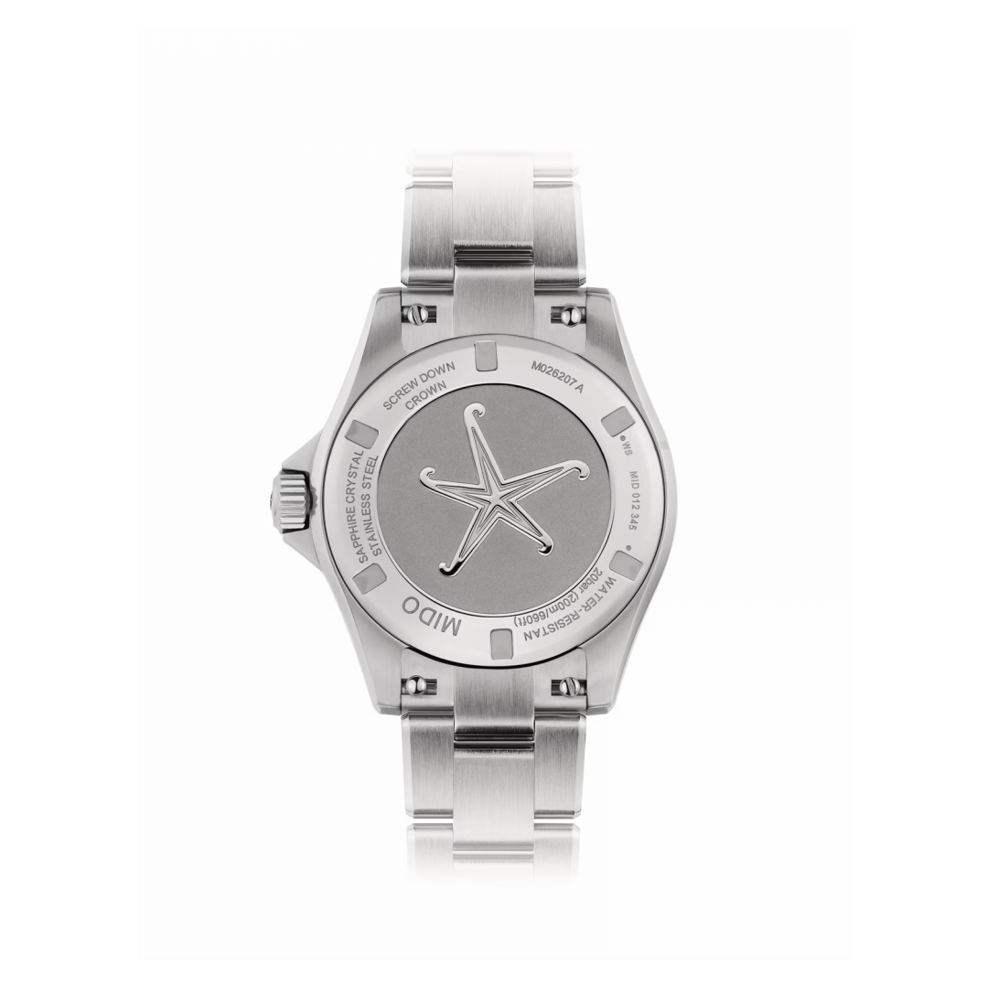 Damen luxus- uhr Mido Ocean Star 36.5 36,5 mm Stahlgehäuse mit Stahlschließe. Die Uhr hat folgende Funktionen: Datum. Die Grundparameter der Uhr sind: ziffernblattfarbe ist blau, bewegungsart ist mechanische Uhr mit automatischem Aufzug, armbandmaterial ist acél und wasserabweisend ist 200 m.