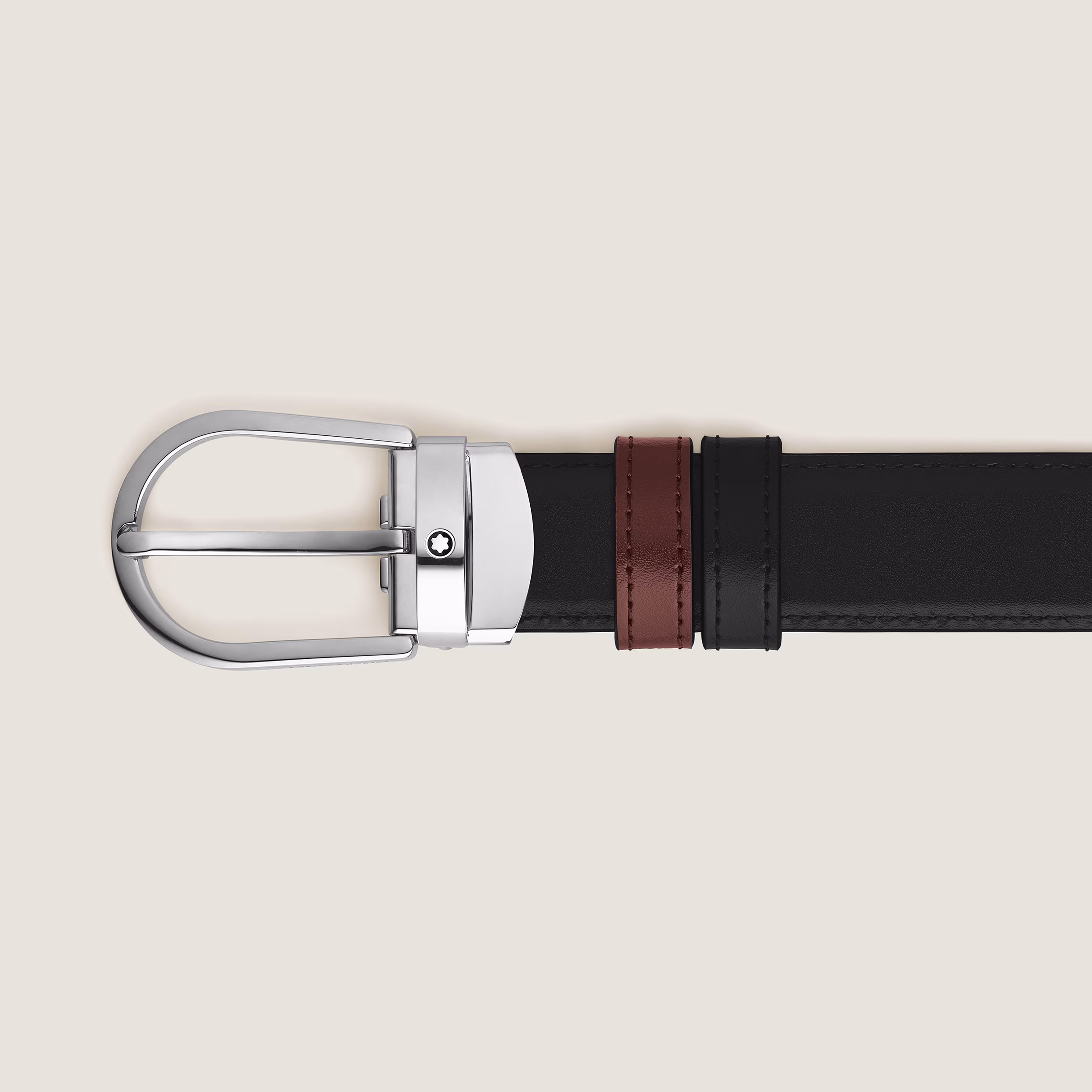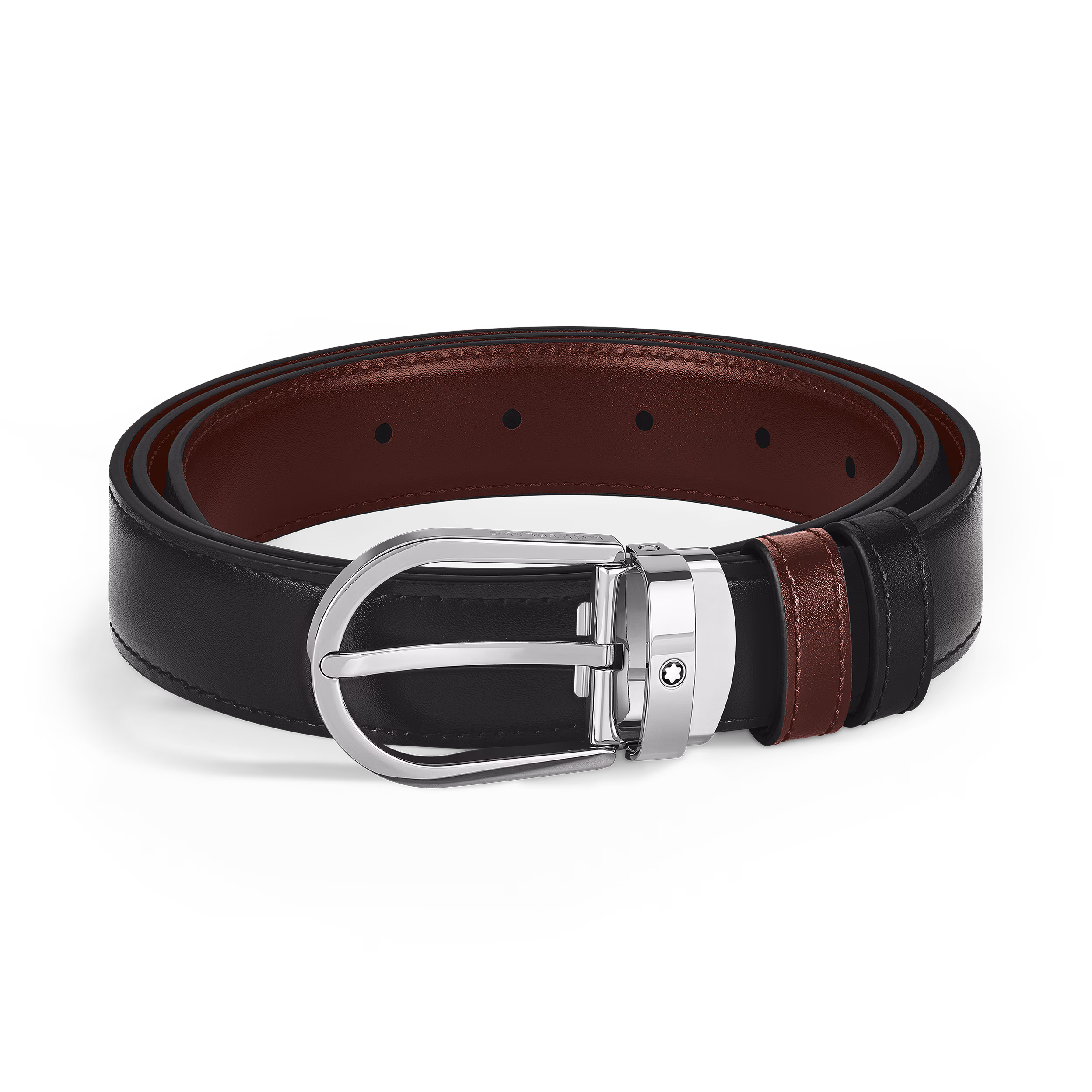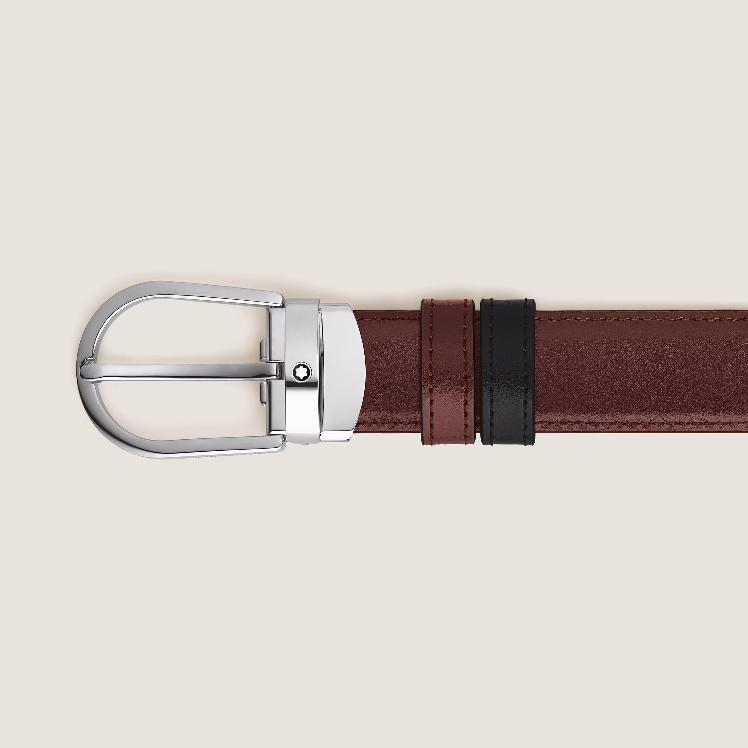 Der Montblanc Horseshoe Buckle Black/Burgundy MB221052 ist ein luxuriöser Gürtel, der Funktionalität mit ästhetischer Perfektion verbindet. Dank seines doppelseitigen Designs bietet er zwei Stile in einem – klassisches schwarzes genarbtes Leder auf der einen Seite und elegantes burgunderrotes Meisterstück-Leder auf der anderen Seite.