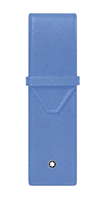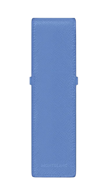 .Dieses Montblanc Stiftetui ist ein eleganter Begleiter im Büro und darüber hinaus und kann zwei Schreibgeräte sicher aufbewahren. Die raffinierte, aus weichem Leder gefertigte, umschlagförmige Gestaltung öffnet sich und enthüllt zwei Fächer, die für Schreibgeräte der Größe Meisterstück Le Grand oder Classique ausgelegt sind. Das Montblanc-Emblem ziert den vorderen Druckknopf.