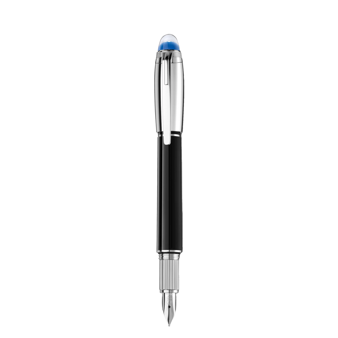 Beim neuen StarWalker geht es darum, inmitten der Sterne zu laufen. Es geht um die Erkundung des Kosmos und fremder Galaxien, um die Teilnahme an einem der geheimnisvollsten und mächtigsten Abenteuer der Menschheit: der Erforschung des Weltraums. Das neue Design der Kollektion zelebriert das von allen Raumfahrern beschriebene Gefühl, unseren blauen Planeten in den unendlichen Weiten des Weltraums schweben zu sehen. Die StarWalker Emblemtechnologie zeichnet sich durch eine blaue, durchscheinende Kuppel unterhalb des Montblanc Emblems aus, die an die Erde erinnert, die sich über dem Mondhorizont abzeichnet. Der StarWalker Doué wird mit einer platinbeschichteten Kappe und Beschlägen sowie einem schwarzen Edelharzschaft geliefert. Der Füllfederhalter ist handgefertigt und mit einer rhodinierten Au585 /14 K Goldfeder ausgestattet.