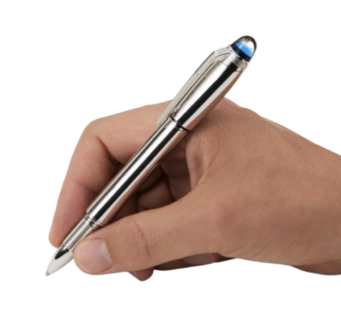 Beim neuen StarWalker geht es darum, inmitten der Sterne zu laufen. Es geht um die Erkundung des Kosmos und fremder Galaxien, um die Teilnahme an einem der geheimnisvollsten und mächtigsten Abenteuer der Menschheit: der Erforschung des Weltraums. Das neue Design der Kollektion zelebriert das von allen Raumfahrern beschriebene Gefühl, unseren blauen Planeten in den unendlichen Weiten des Weltraums schweben zu sehen. Die StarWalker Emblemtechnologie zeigt eine blaue, durchscheinende Kuppel unter dem Montblanc Emblem, die an die Erde erinnert, die über dem Mondhorizont auftaucht. Die StarWalker Metal wird mit einem platinbeschichteten Korpus und Beschlägen geliefert.