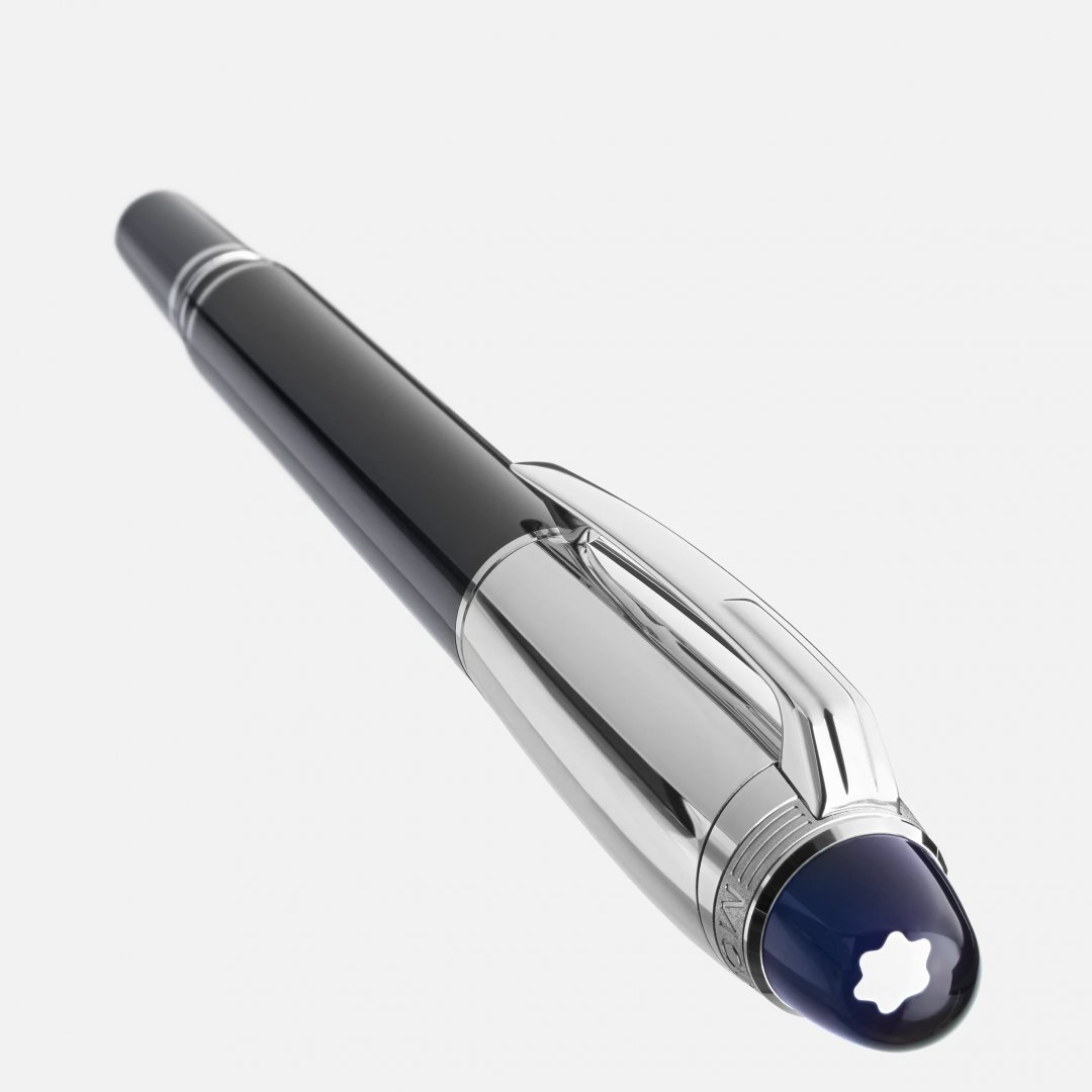 Beim neuen StarWalker dreht sich alles um einen Spaziergang zwischen den Sternen, um den Kosmos mit seinen fremden Galaxien zu erkunden und Teil eines der geheimnisvollsten und fantastischsten Abenteuer der Menschheit zu sein: der Erforschung des Weltraums. Das neue Design der Kollektion würdigt die unbeschreiblichen Emotionen, die alle Weltraumreisenden erfassen, wenn sie den blauen Planeten im unendlichen Weltall schweben sehen. Die StarWalker Emblem-Technologie äußert sich in einer durchscheinenden blauen Wölbung unterhalb des Montblanc Emblems, die an die Erde erinnert, wenn sie am Mondhorizont aufgeht. Die Kappe und die Beschläge des StarWalker Doué sind platiniert und der Korpus ist aus schwarzem Edelharz gefertigt. Der Füllfederhalter ist handgefertigt und verfügt über eine Feder aus rhodiniertem 585er / 14 K Gold.