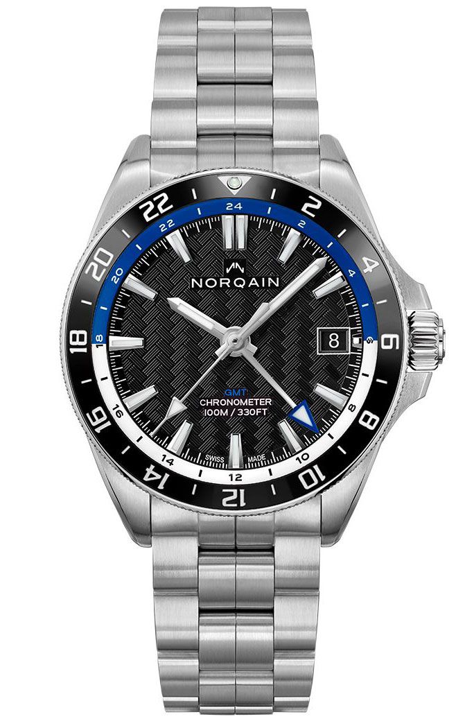 Norquain ADVENTURE NEVEREST GMT Automatisch, 41 mm. Die Uhr hat folgende Funktionen: Lumineszenz, Dualzeit und Datum . Die Grundparameter der Uhr sind: bewegungsart ist mechanische Uhr mit automatischem Aufzug, armbandmaterial ist Stahl, wasserabweisend ist 100 m und ziffernblattfarbe ist schwarz.
