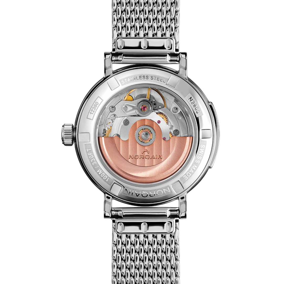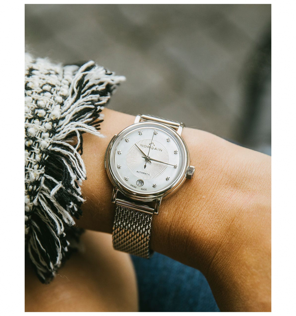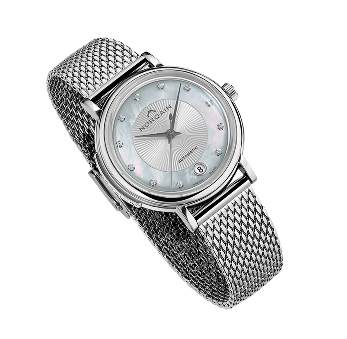 Norqain Freedom 60 34mm Stahlgehäuse StahlschließePerlmuttzifferblatt.
