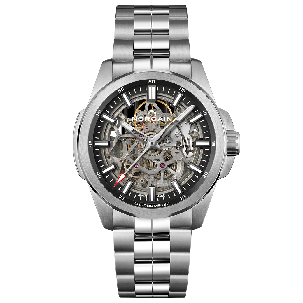 Norquain INDEPENDENCE SKELETON Automatisch, 42 mm. Die Uhr hat folgende Funktionen: Lumineszenz. Die Grundparameter der Uhr sind: ziffernblattfarbe ist transparent, bewegungsart ist mechanische Uhr mit automatischem Aufzug, armbandmaterial ist Stahl und wasserabweisend ist 100 m.