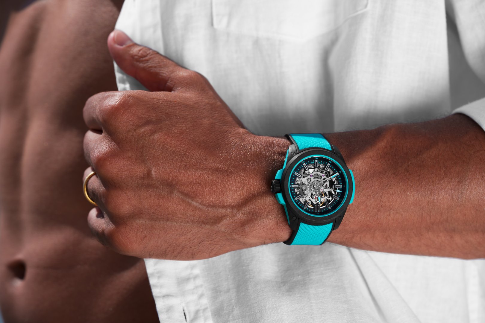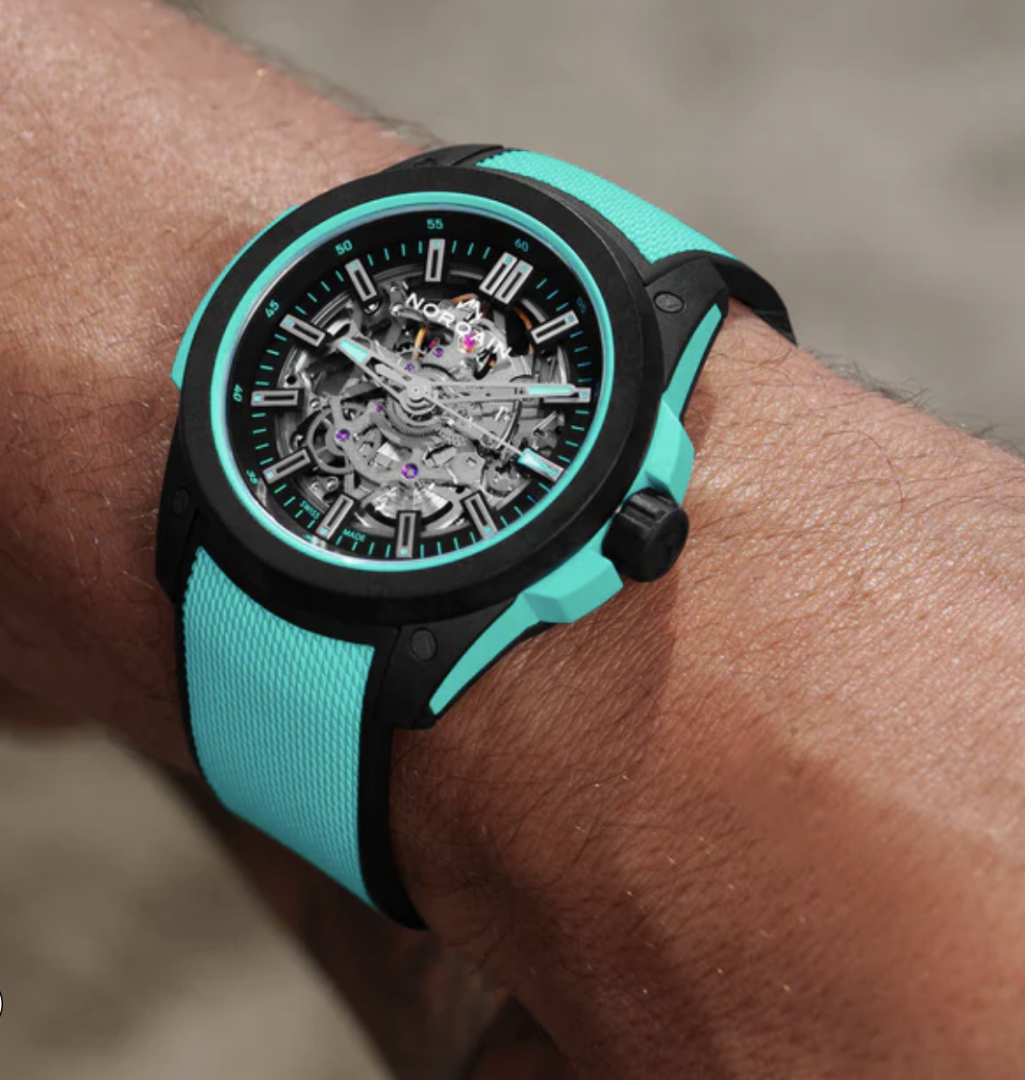 Die Wild ONE aus unserem ultra-robusten und ultra-leichten patentierten NORTEQ® Karbonfasermaterial ist die ultimative Hochleistungssportuhr. Sechsmal leichter als Stahl und 3.5-mal leichter als Titan wurde die Wild ONE in Zusammenarbeit mit Jean-Claude Biver, dem NORQAIN-Team und den besten Schweizer Lieferanten entwickelt.