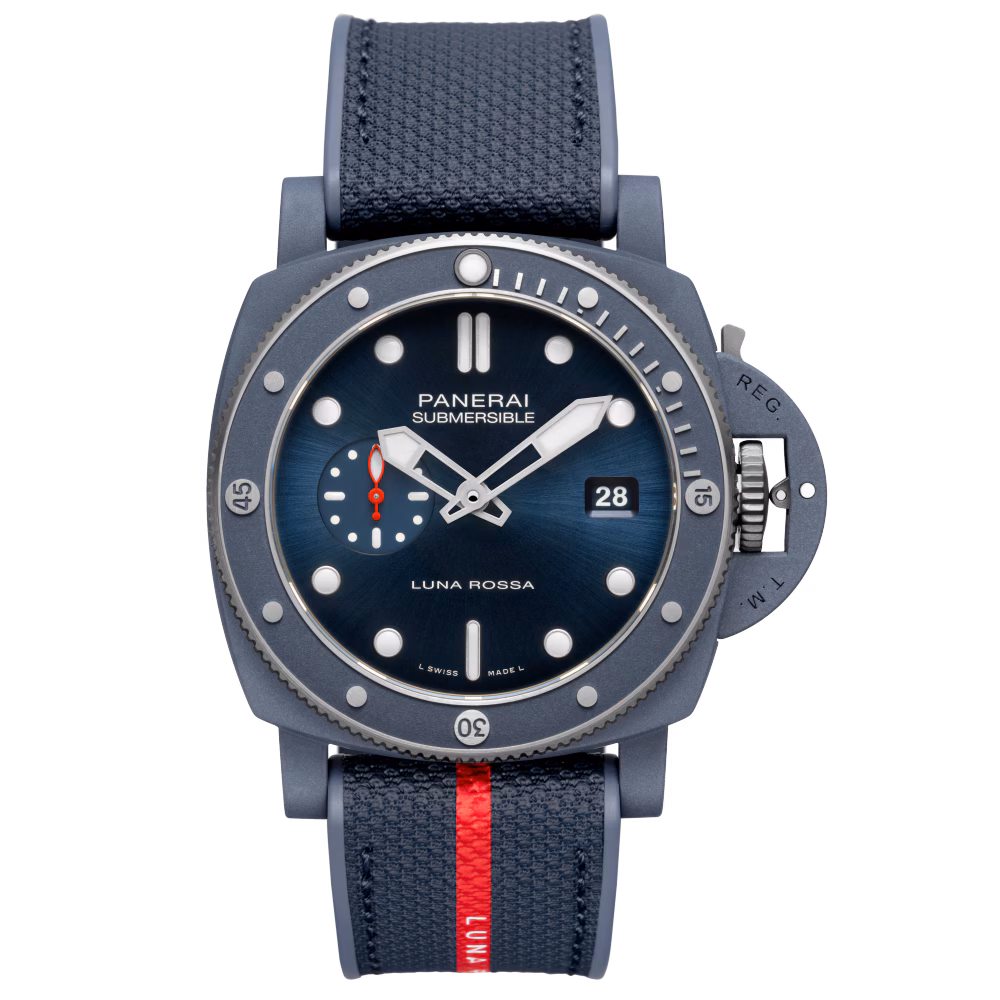 Die Panerai Submersible QuarantaQuattro Luna Rossa Ti-Ceramitech™ PAM01466 ist eine Uhr, die Spitzentechnologie, italienisches Design und extreme Widerstandsfähigkeit vereint – bereit für jedes Abenteuer, an Land und unter Wasser.