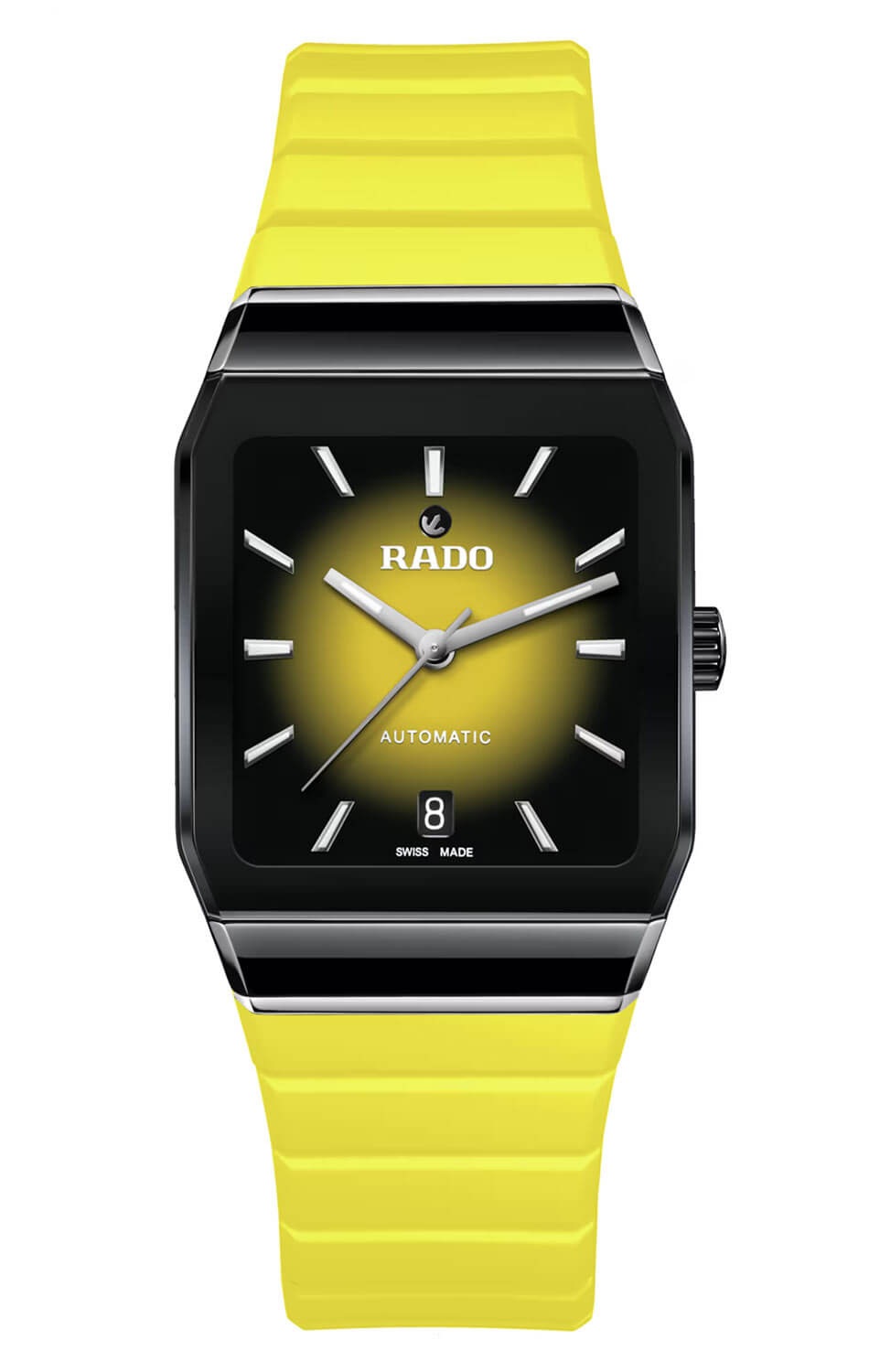 Rado Anatom Automatic Automatik, 32.5 mm. Die Uhr hat folgende Funktionen: Lumineszenz und Datum . Die Grundparameter der Uhr sind: bewegungsart ist mechanische Uhr mit automatischem Aufzug, wasserabweisend ist 50 m, armbandmaterial ist Gummi und ziffernblattfarbe ist schwarz und gelb.