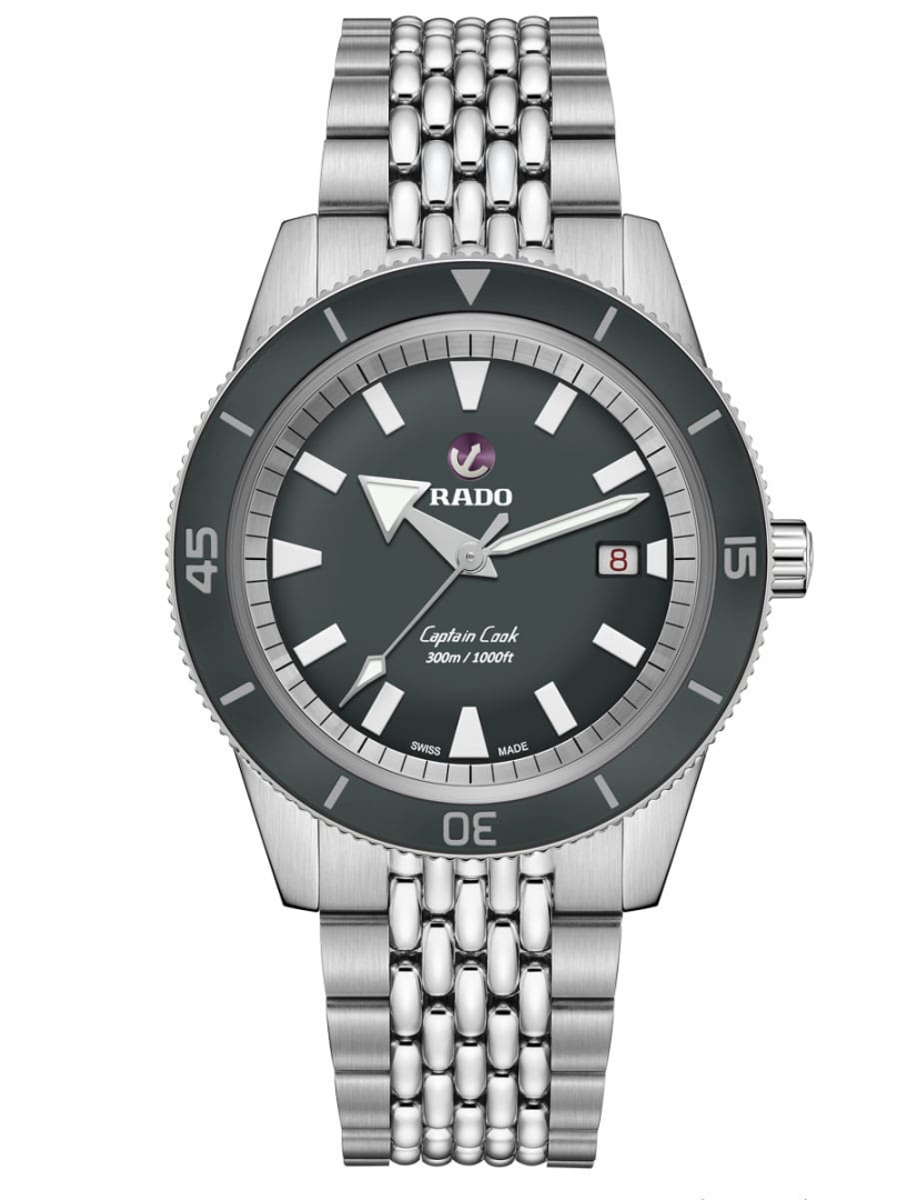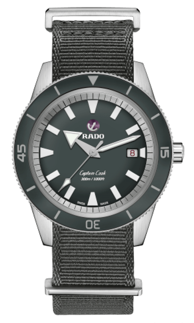 Der ursprüngliche Look von 1962 wird in einer neuen und verbesserten Form für das einundzwanzigste Jahrhundert zum Leben erweckt. Jahrhundert wiederbelebt. Mit Vintage-Details und originalgetreuem Styling sowie aktuellen Funktionen, die sie für moderne Träger geeignet machen, ist die Captain Cook eine Uhr, die den Test der Zeit übersteht. Die Captain Cook wird in einem strapazierfähigen Lederetui mit einer Auswahl an zusätzlichen Armbändern geliefert, die es Ihnen ermöglichen, mit dem EasyClip-System von Rado das Armband schnell und einfach zu wechseln, ohne dass Sie dafür Werkzeug benötigen.