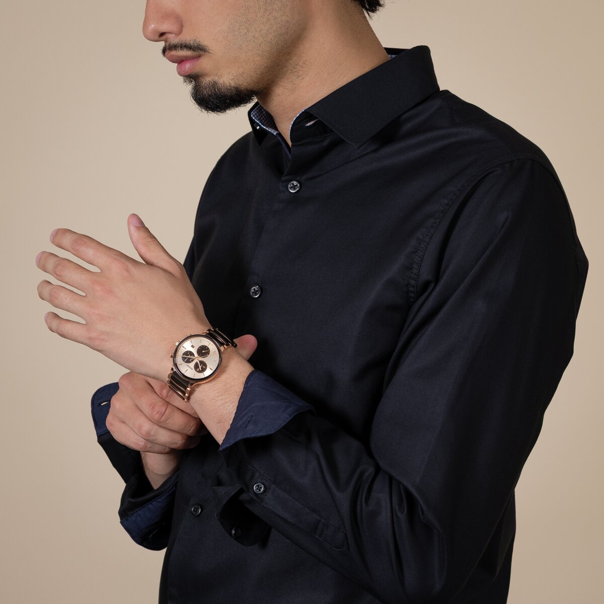 • Zifferblatt: Champagnerfarbenes Sunray-Zifferblatt mit applizierten Indizes in Roségold und Super-LumiNova®.