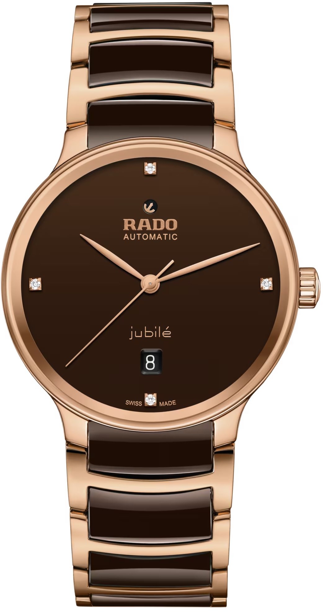 Rado Centrix Diamanten, Automatik, 39.50 mm. Die Uhr hat folgende Funktionen: Datum . Die Grundparameter der Uhr sind: bewegungsart ist mechanische Uhr mit automatischem Aufzug, armbandmaterial ist Keramik und Stahl, wasserabweisend ist 50 m und ziffernblattfarbe ist braun.