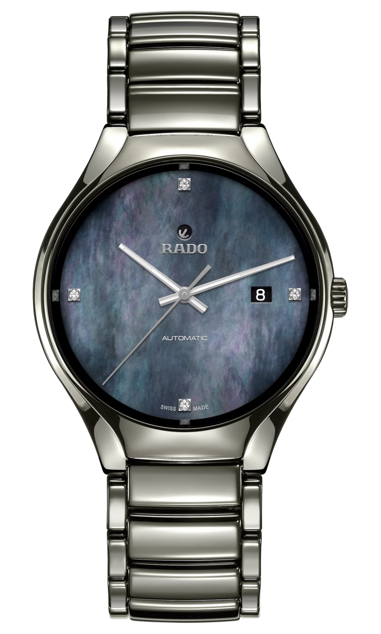 Herren luxus- luxus- uhr Rado True 40mm Plasma High-Tech Ceramic, Titanium. Die Uhr hat folgende Funktionen: Datum. Die Grundparameter der Uhr sind: armbandmaterial ist kerámia, ziffernblattfarbe ist grau, bewegungsart ist mechanische Uhr mit automatischem Aufzug und wasserabweisend ist 50 m.