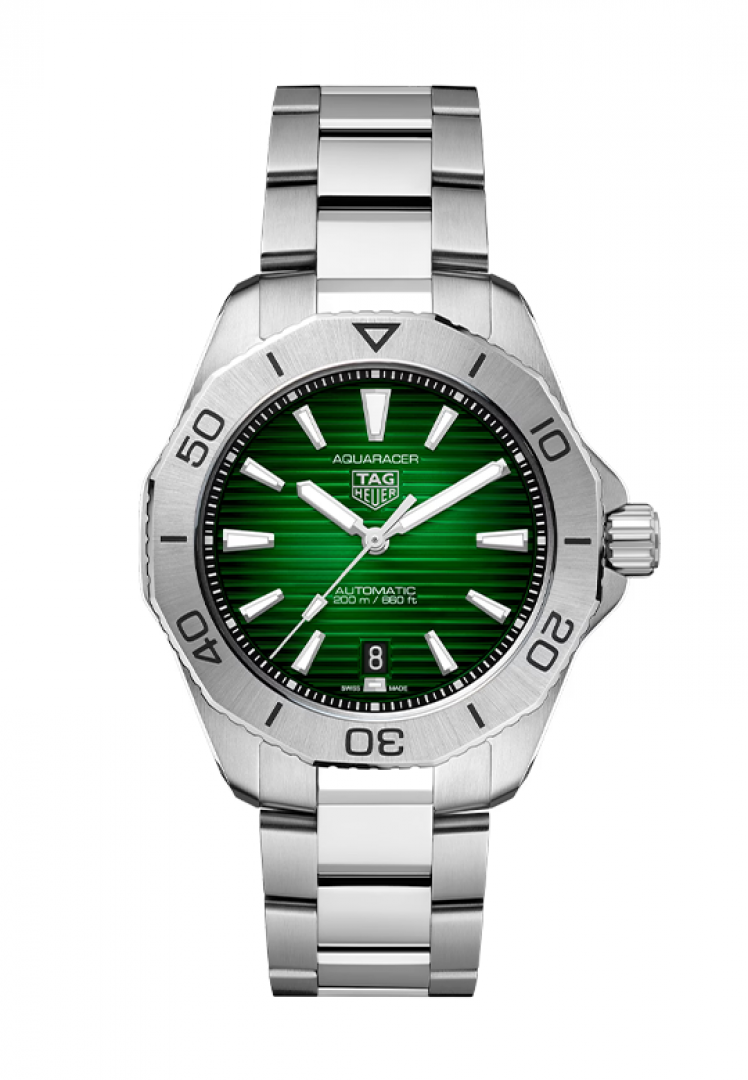 TAG Heuer Aquaracer PROFESSIONAL 200 DATE Automatik, Waaserdicht 200M, 40 mm. Die Uhr hat folgende Funktionen: Lumineszenz und Datum . Die Grundparameter der Uhr sind: bewegungsart ist mechanische Uhr mit automatischem Aufzug, armbandmaterial ist Stahl, wasserabweisend ist 200 m und ziffernblattfarbe ist grün.