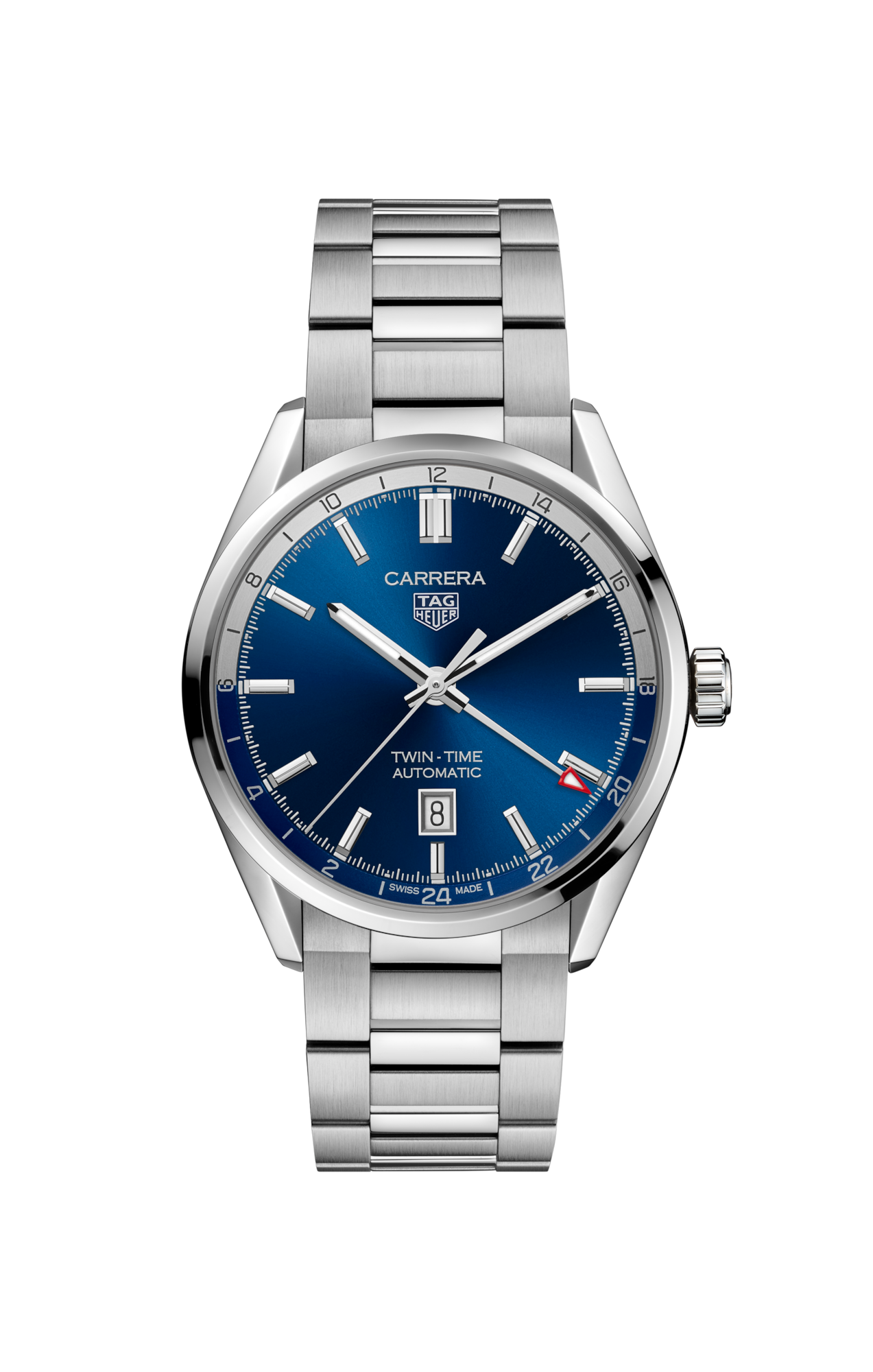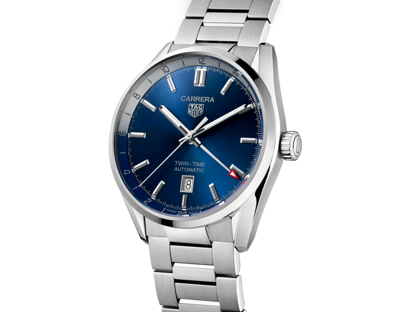 Herren luxus- uhr TAG Heuer Carrera 41mm steel case steel bracelet blue dial twin time.