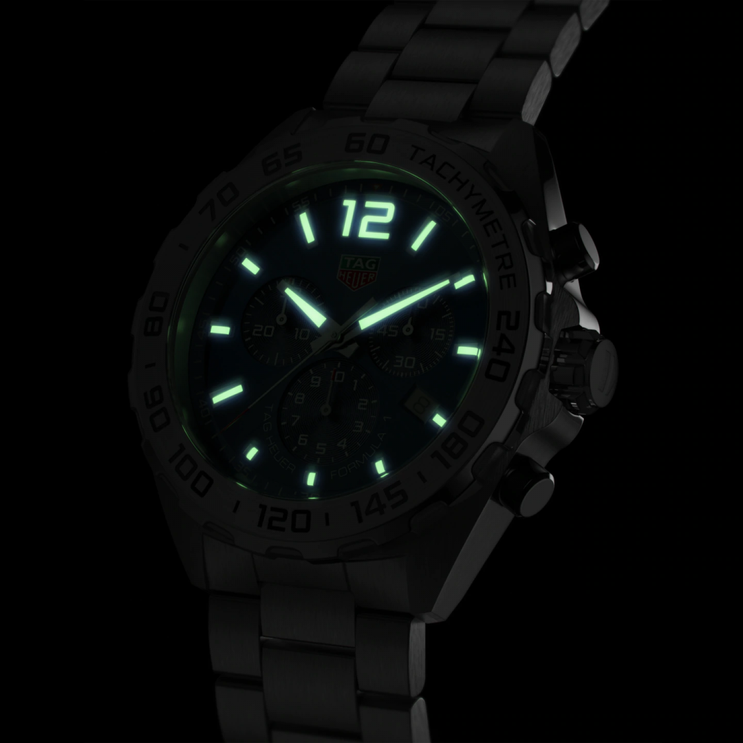 TAG Heuer Formula 1 . Die Uhr hat folgende Funktionen: Lumineszenz, Datum , Stoppuhr und Tachymeter-Skala. Die Grundparameter der Uhr sind: armbandmaterial ist Stahl, wasserabweisend ist 200 m, ziffernblattfarbe ist blau und bewegungsart ist Quarz-Chronograph.