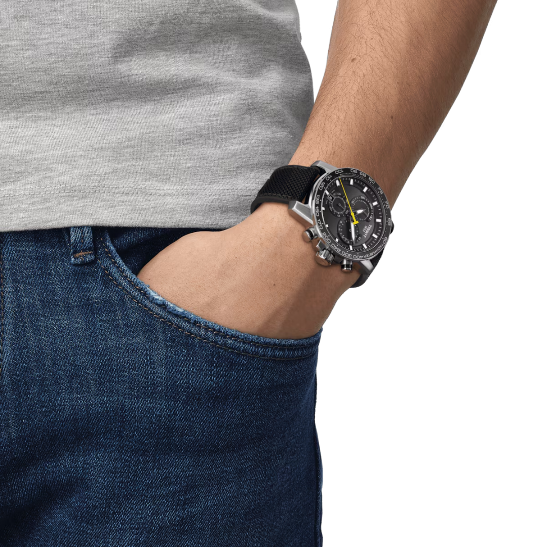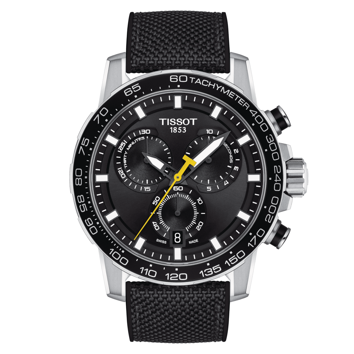 Herren luxus- uhr Tissot T-Sport SUPERSPORT CHRONO 45mm Stahlgehäuse mit Textilband.