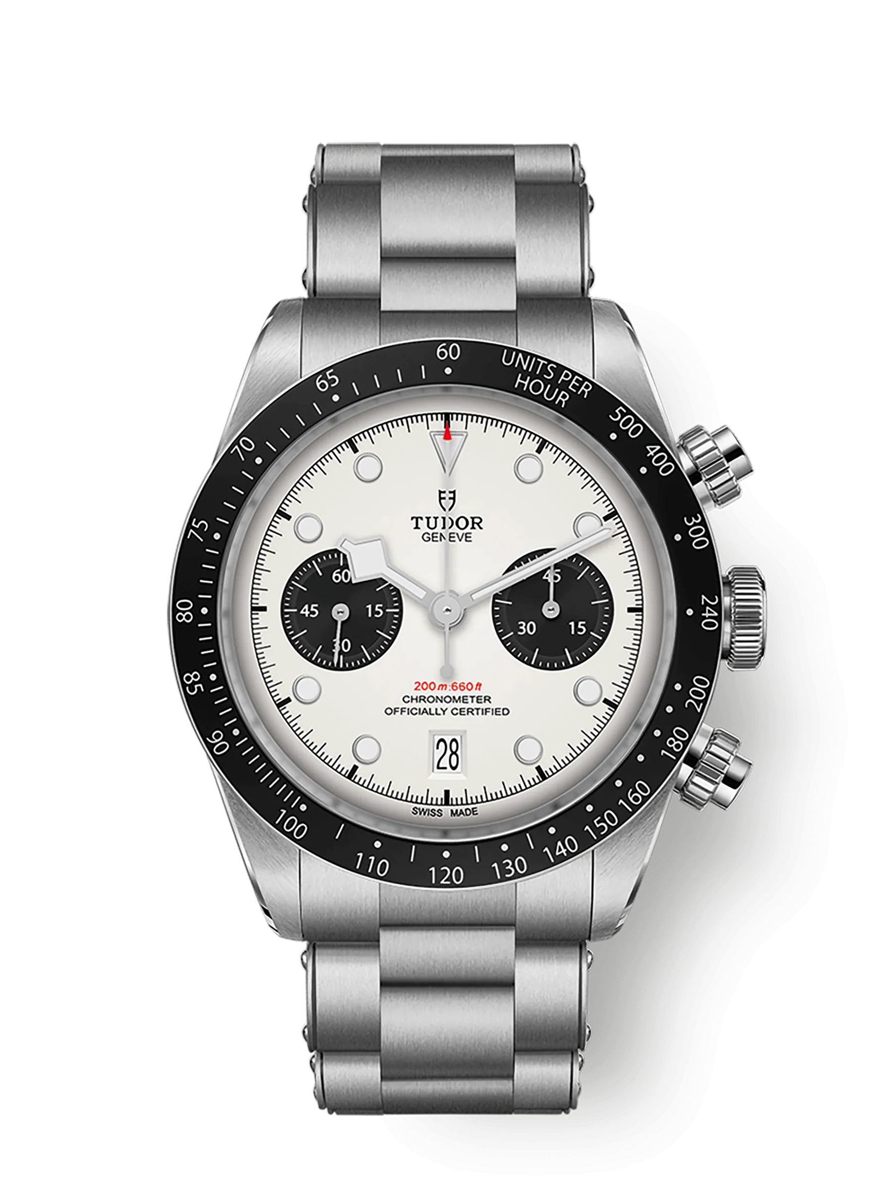 Herren luxus- uhr Tudor Black Bay Chrono 41mm steel case steel bracelet Calibre MT5813. Die Uhr hat folgende Funktionen: Datum, Lumineszenz und Stoppuhr. Die Grundparameter der Uhr sind: ziffernblattfarbe ist beige, bewegungsart ist mechanischer Chronograph mit automatischem Aufzug, armbandmaterial ist acél und wasserabweisend ist 200 m.