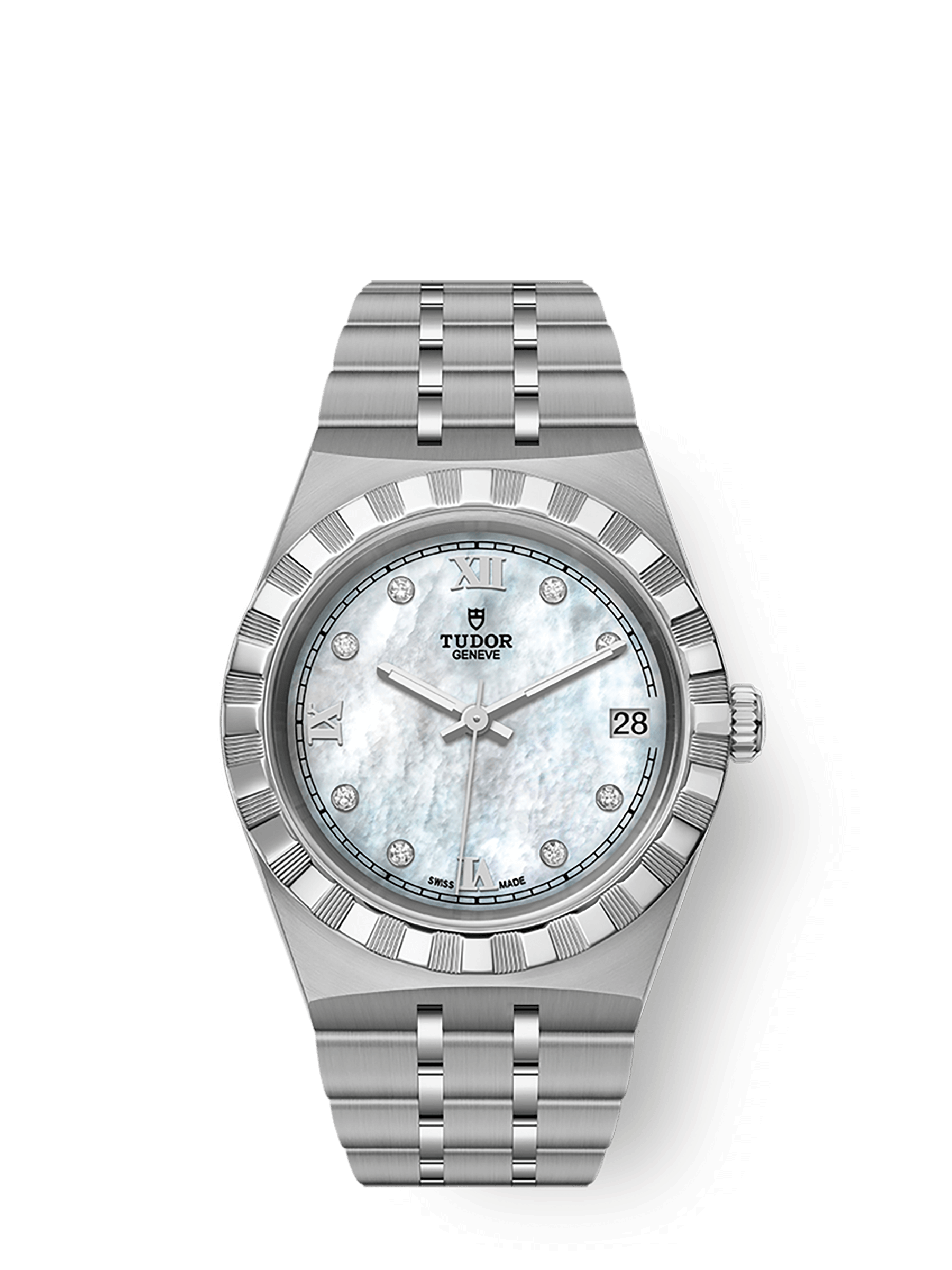 Damen luxus- uhr Tudor Tudor Royal 34mm steel case, with dial set of diamonds.