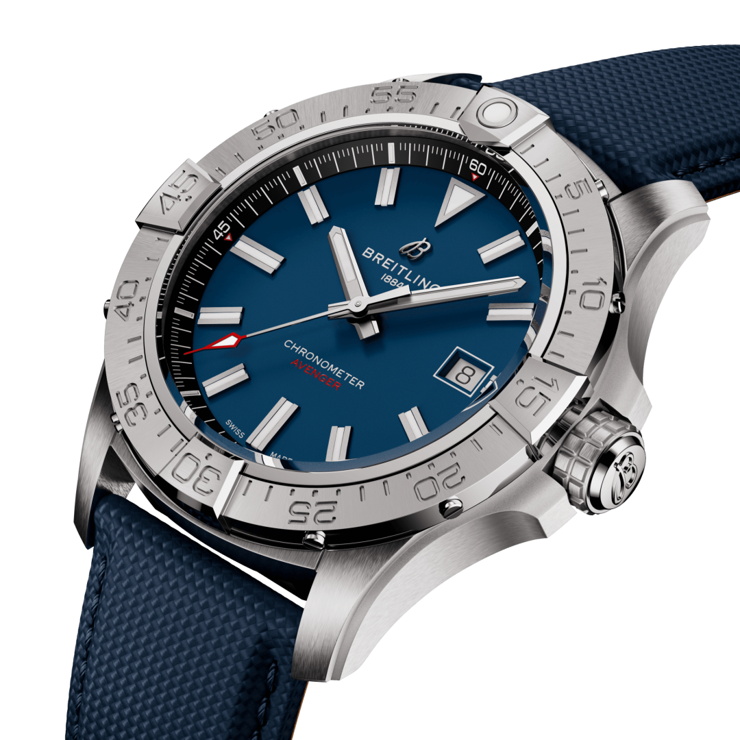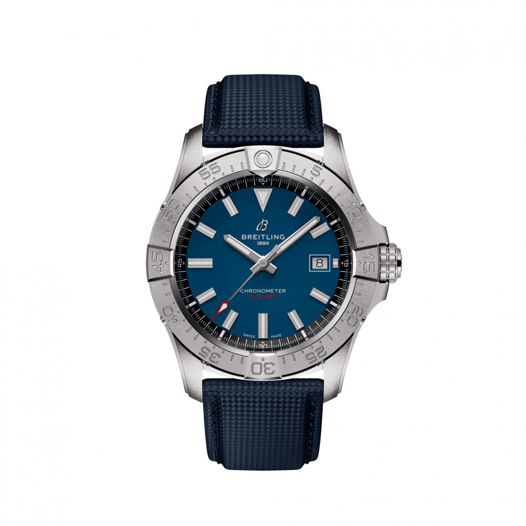 luxury watches Breitling Avenger Automatic 42 Automatic, Water resistance 300M, 42 mm. The watch has functions luminescence and date . Basic parameters of the watch are: water resistance is 300 m, movement type is mechanical watch with automatic winding, dial colour is blue and strap material is leather.