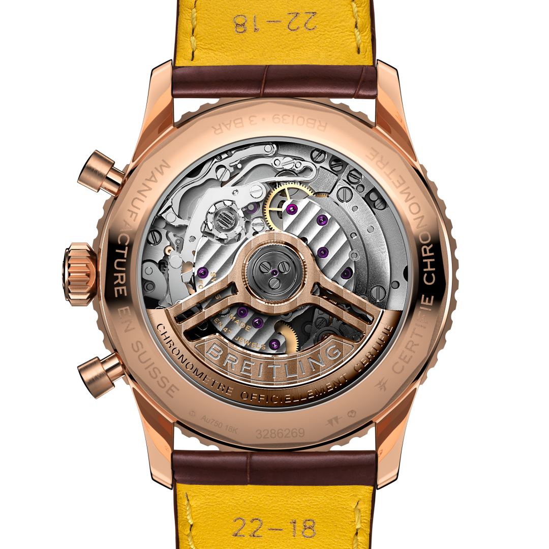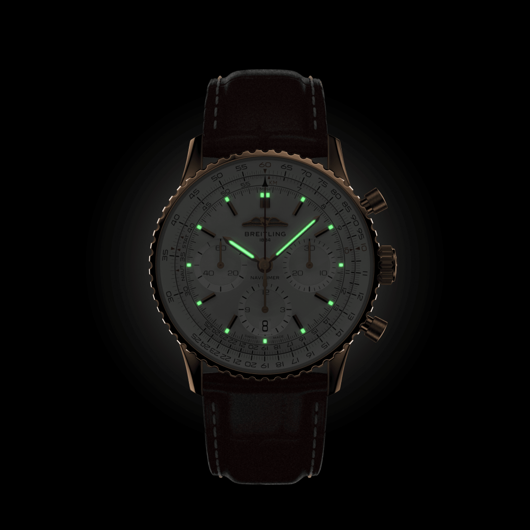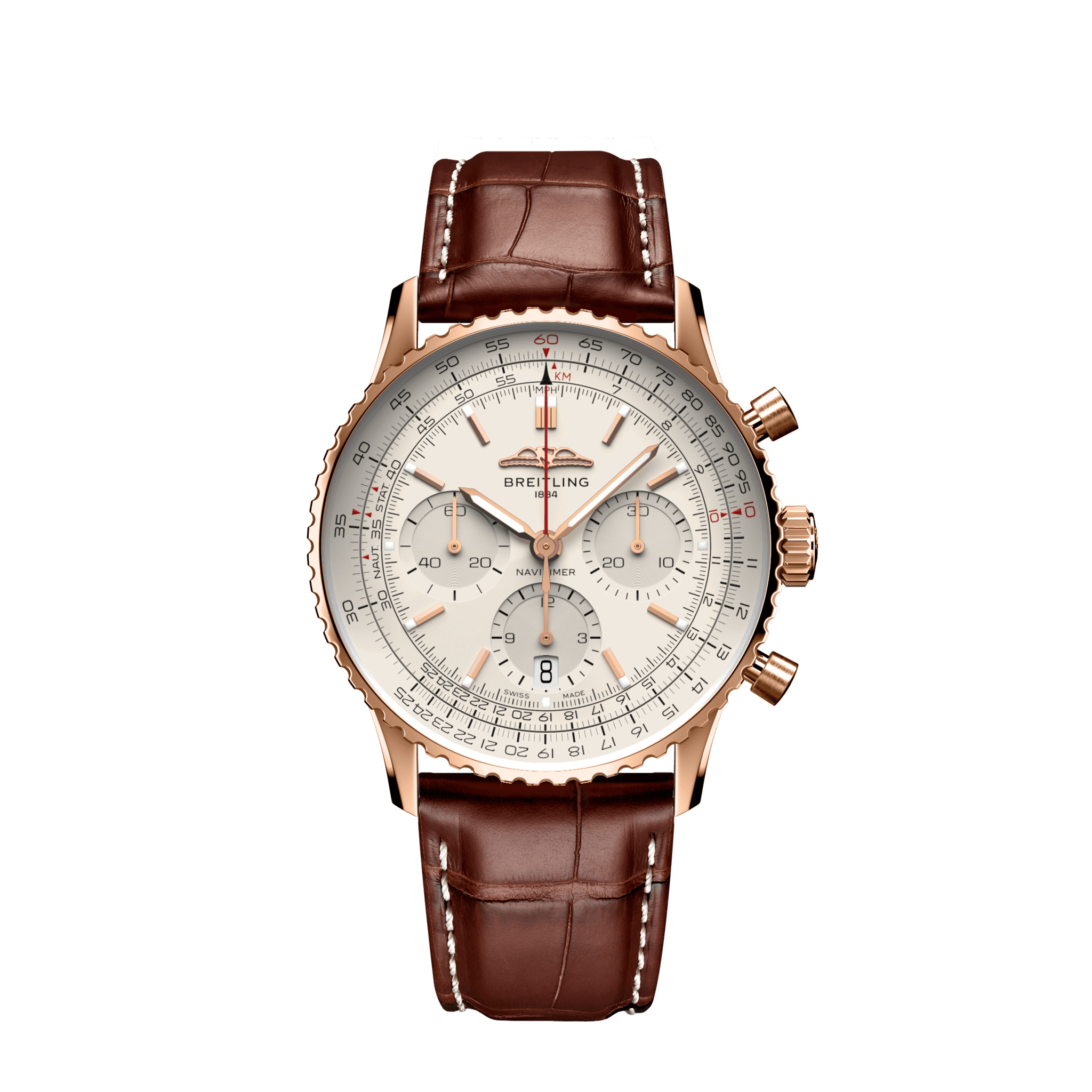 Men's luxury luxury watches Breitling Navitimer B01 Chronograph 41mm gold case with leather strap.