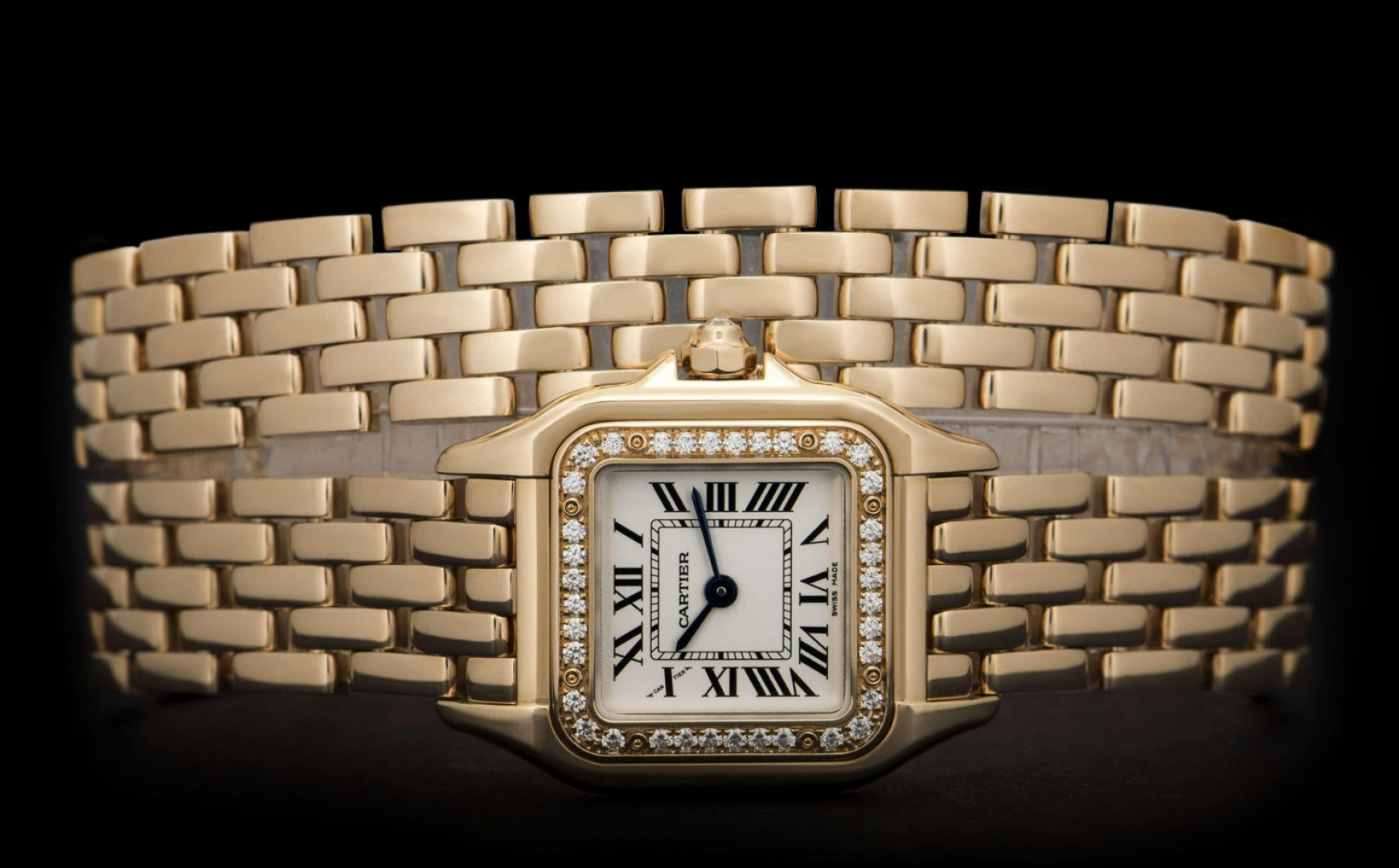 Luxury watches Cartier Panthère de Cartier small modell rose gold quartz with diamonds.