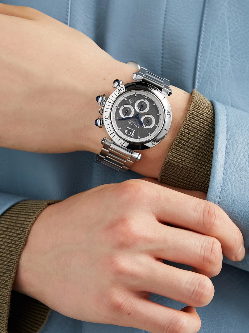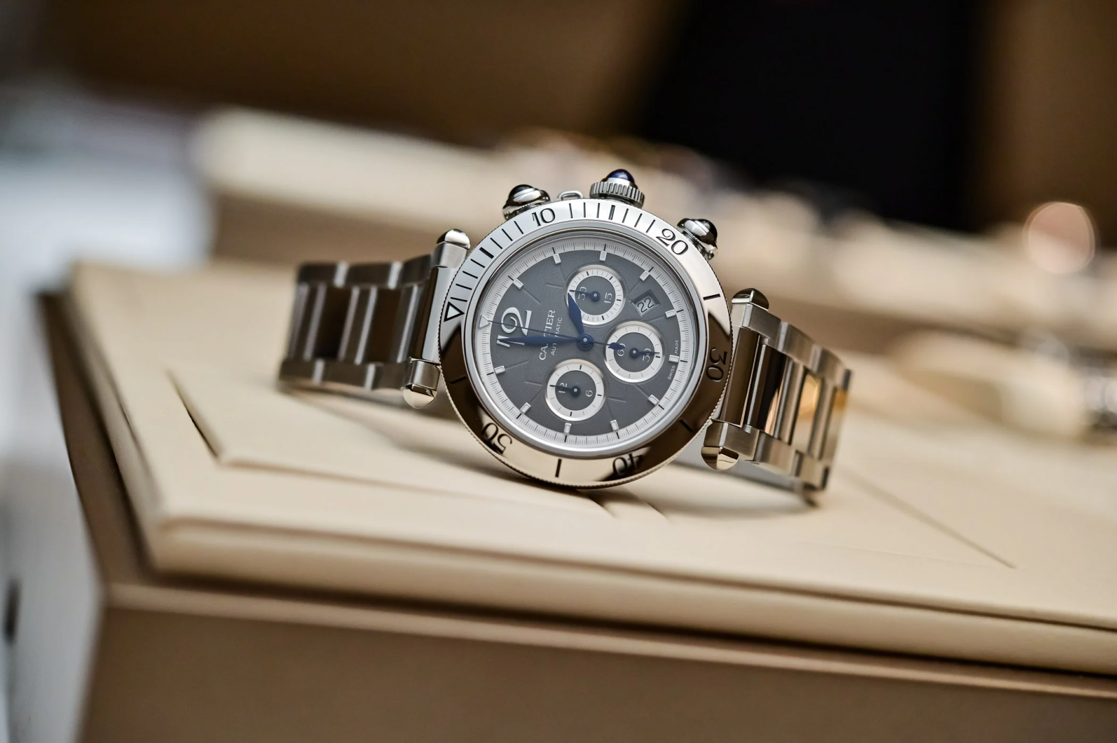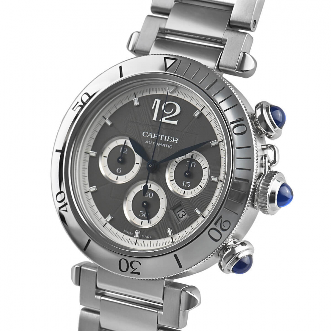 Luxury watches Cartier Pasha de Cartier PASHA DE CARTIER. The watch has functions date. Basic parameters of the watch are: dial colour is white and silver, movement type is mechanical watch with automatic winding, bracelet is leather and water resistance is 100 m.