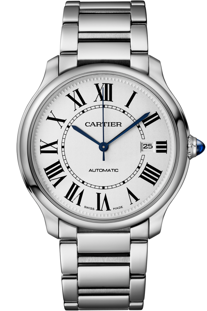Men's luxury watches Cartier Ronde Must De Cartier 40mm steel case with steel buckle.