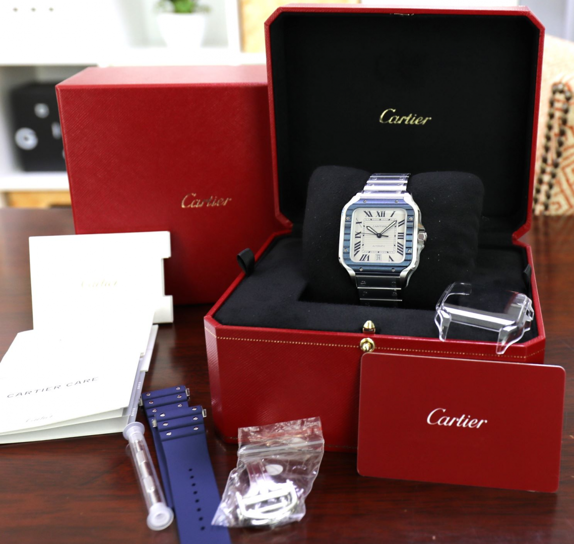 Men's luxury watches Cartier Santos de Cartier 40mm Large automatic steel metal and rubber straps.